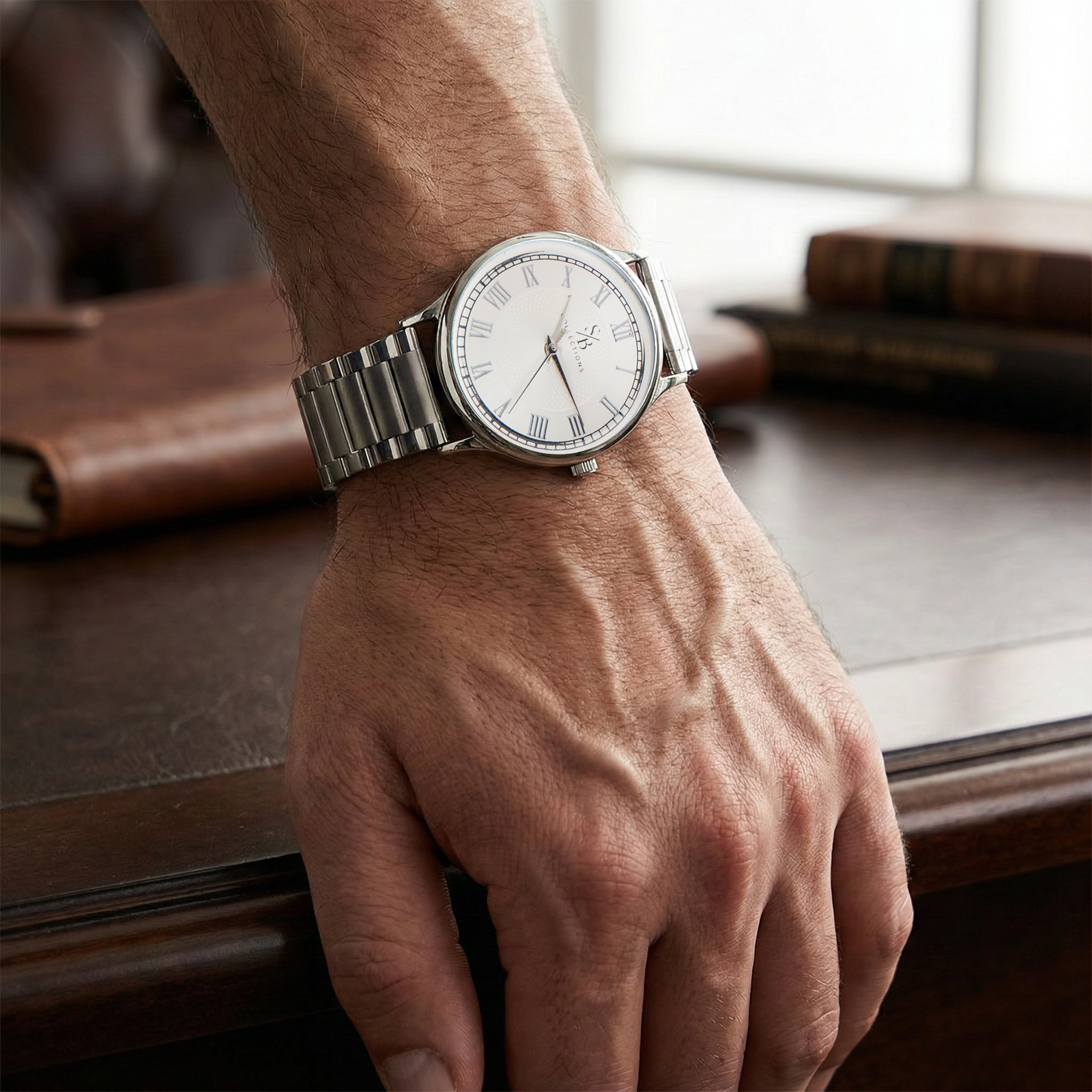 Roman Muse Silver-Tone Men’s Link Watch